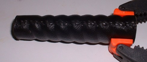 The grip is a nicely sculpted wood core with a glued on leather cover. Oval in cross section with an overall taper from guard to pommel.
