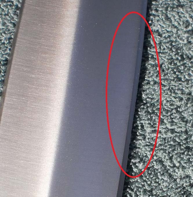 I was disappointed with the twist in the blade and the ragged, rough side of the edge. There's little excuse for this, especially coming from a KoA 'house brand'. This is the kind of thing I would expect if I bought a cheaper 'munitions grade' version of the Greek Xiphos for less.