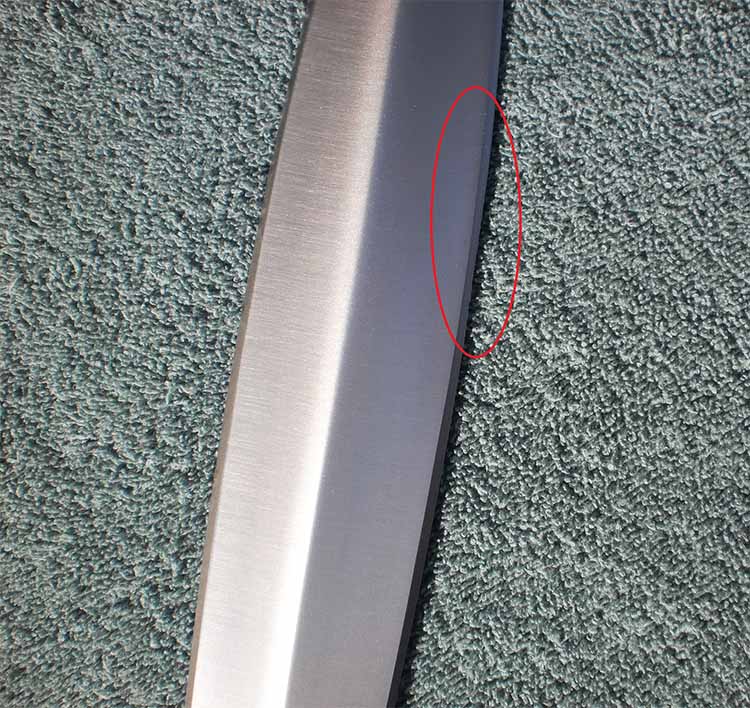 Knowing what I know now - I would have exchanged it at the time. However - it is not a loss. It cuts, it is fun, and it still looks fine, as long as you don't look at it at the exact wrong angle. I haven't done abusive testing like Skallagrim did, so I am not certain if the temper is better with this release - but I have tried to bend the blade back into shape with no success at all using blocks, so that says something. All in all? It is just a very fun piece, with nice looks. It feels good to hold and move, and is something different for a collection.