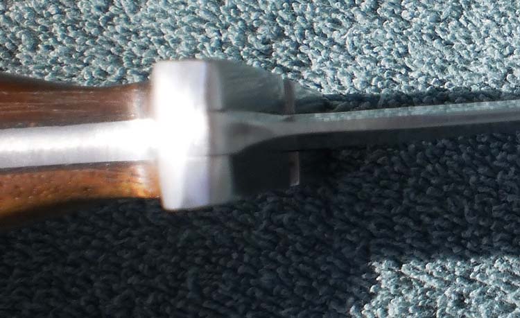 This is pretty unique. It's got a cap on the end that looks like it's peened to a rod... maybe welded onto the tang? I have no idea in this case. It's likely that even if I were to pry/break this end cap off, that the grip assembly would still be fine. Judge for yourself on the picture below.