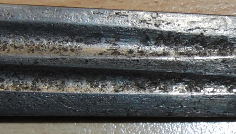 Thing is removing all of the rust down to the deepest pits might mean changing the geometry of the blade, and I'd prefer to keep it as close to original as possible... Luckily my sabre is of the blunt unsharpened kind used for parades (many of these were sharpened prior to WW1), so there is a bit of spare material. But it's not infinite I'm afraid...