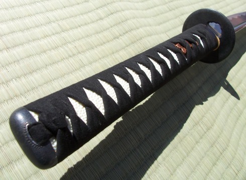 The 11" tsuka is covered in synthetic (plastic) rayskin and wrapped